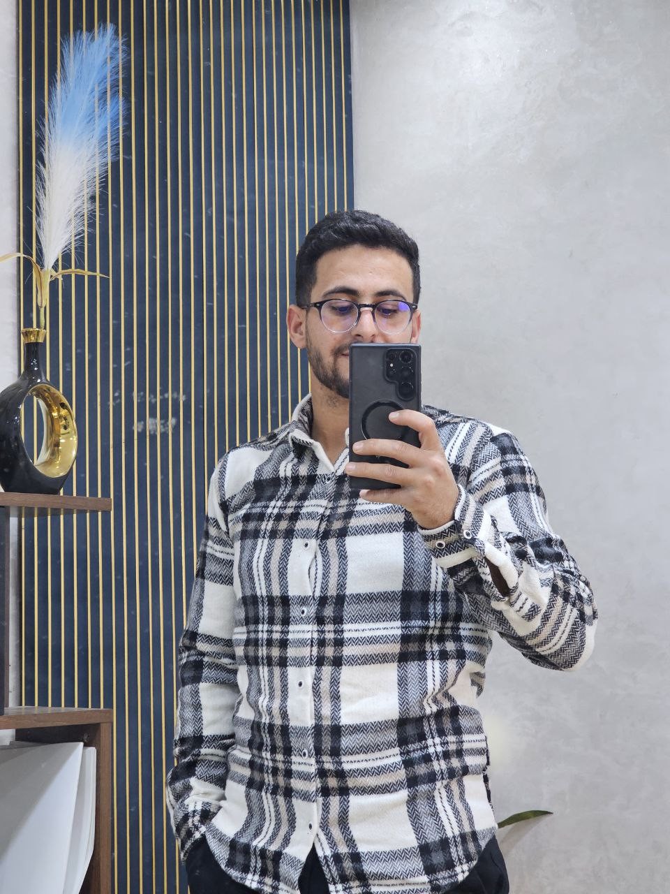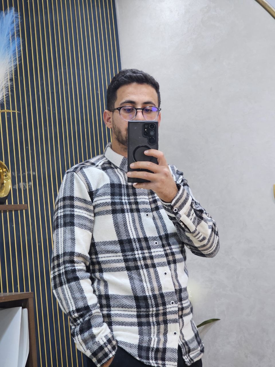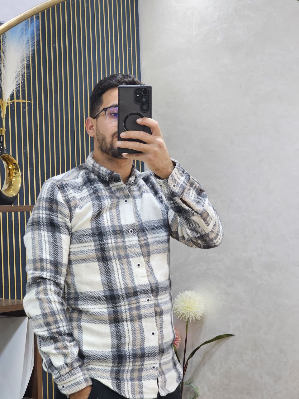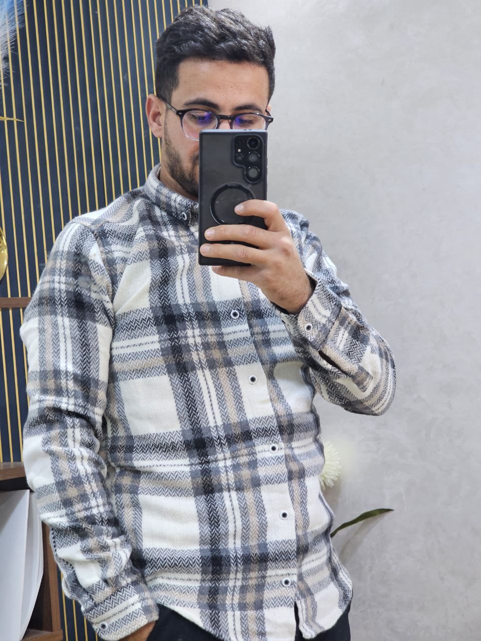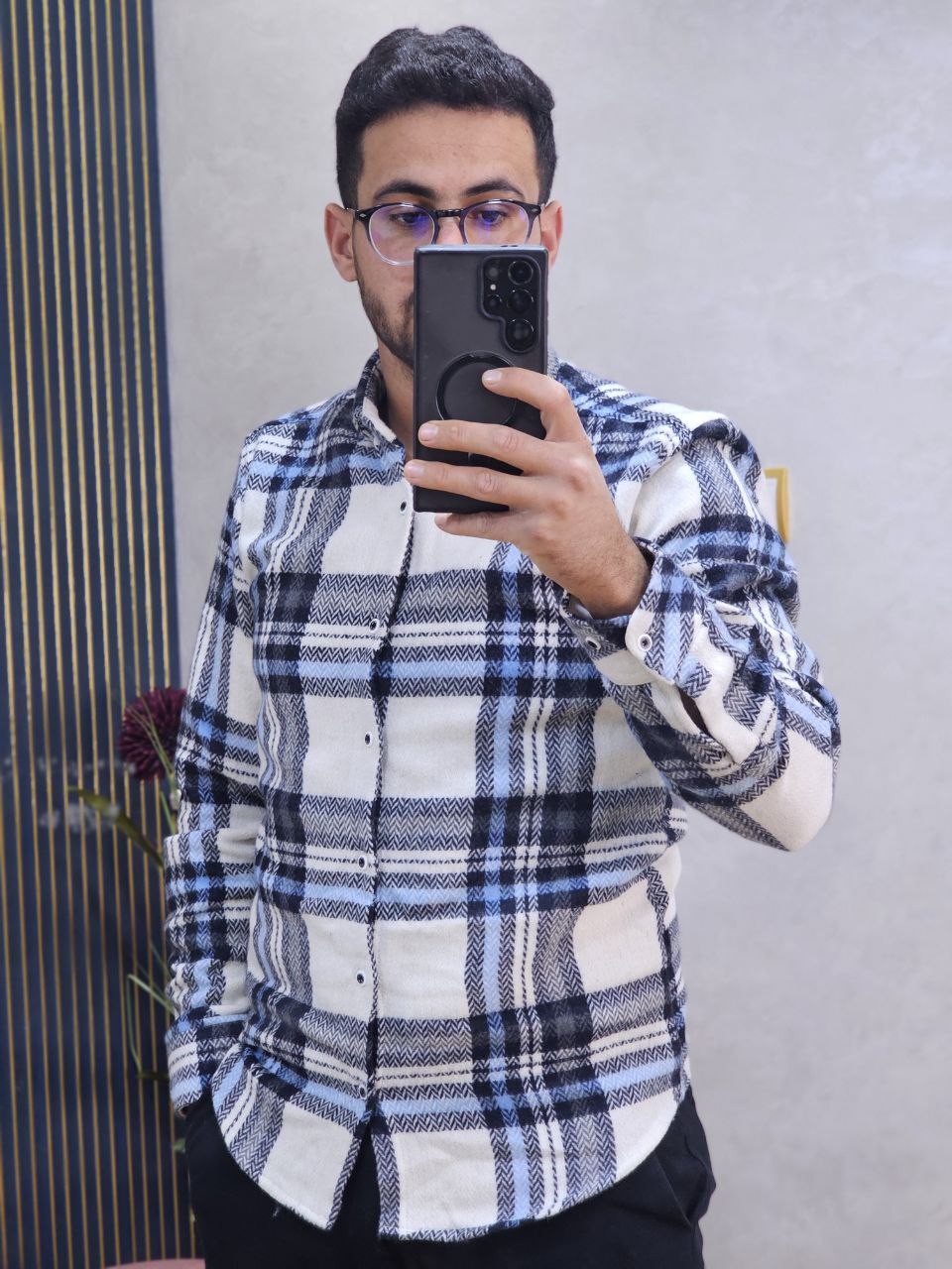 قميص رجالي ثوب قطن غليظ بجودة عالية، كيجي دافئ ومريح فلبسة النهار كامل. تصميم كاروه كلاسيكي مع لمسة عصرية، كيزيد الهيبة وكيبان منسّق بلا مجهود. الثوب غليظ ومقوّى، ماكيترخّاش وكيحافظ على الشكل ديالو حتى بعد الغسيل. مناسب للخروج، الخدمة، ولا ستايل كاجوال شيك فالبرد.